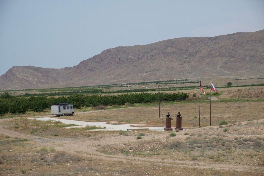 (Die Bilder oben zeigen eine Kriegsgedenkstätte und Stellungen der armenischen Armee zu Aserbaidschan)